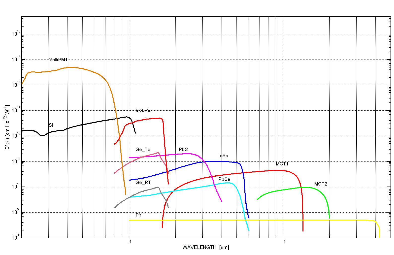 4 - 12µm | Quecksilber-Kadmium-Tellurid-Detektor mit Dewar-Kühler (flüssiger Stickstoff; 12h Haltezeit); 2mm Durchmesser aktive Fläche. (benötigt Netzteil 275) |
