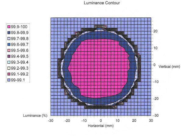 Homogenität | ±0.05% über 100mm Durchmesser Öffnung, unabhängig von der Leuchtdichte |